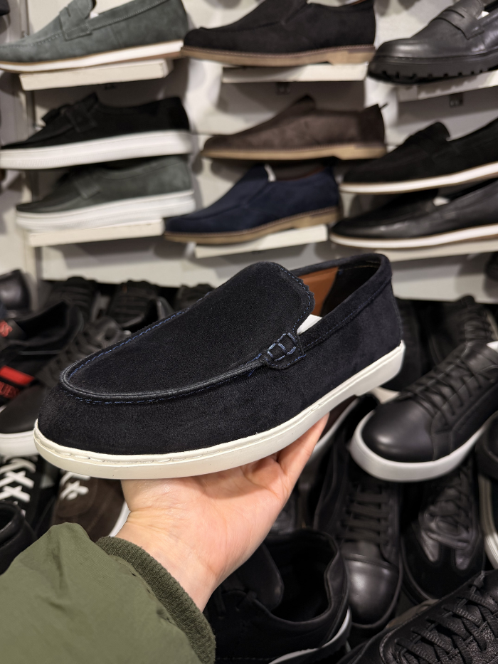 ელეგანტური ლოფერი, დამზადებულია ნატურალური ზამშისგან, რაც განსაკუთრებულ კომფორტსა და დახვეწილ სტილს ანიჭებს. მუქი ლურჯი ფერი და თეთრი ძირი იდეალურად ერწყმის კლასიკურ და ყოველდღიურ ლუქს. ფეხსაცმელი შეკერილია საქართველოში.