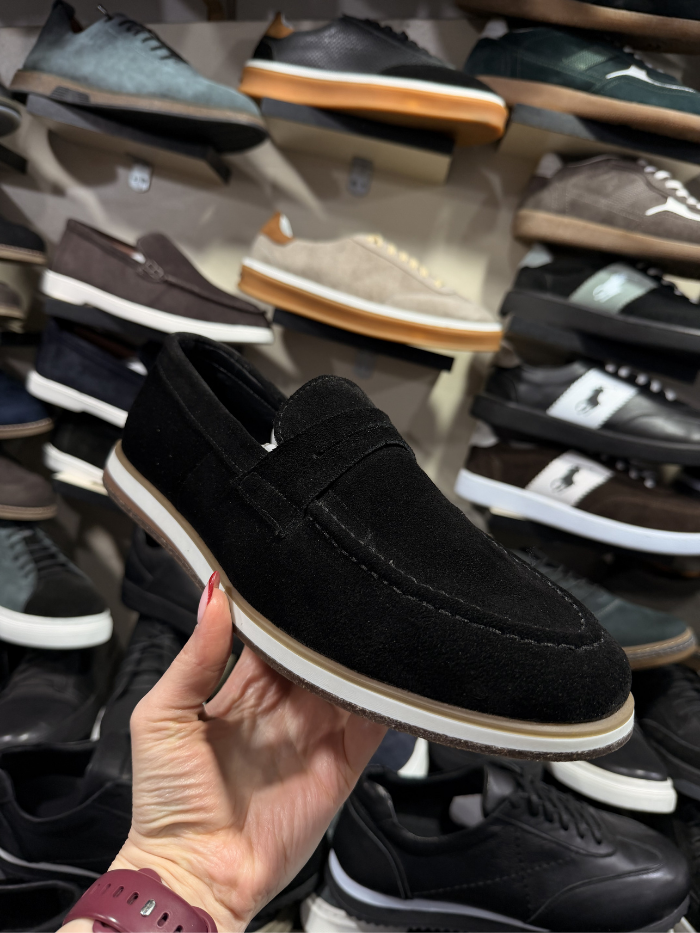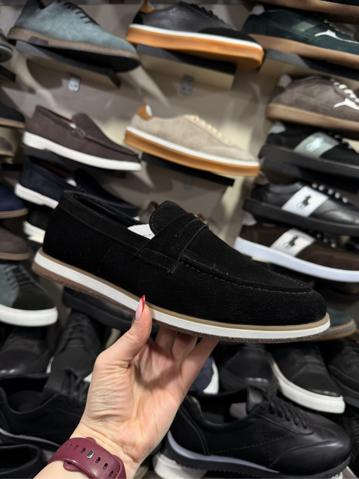 ელეგანტური შავი ზამშის ლოფერები კომფორტული და მსუბუქი დიზაინით. რბილი მასალა და მოქნილი ძირი უზრუნველყოფს მაქსიმალურ კომფორტს ყოველდღიური ტარებისთვის. იდეალური არჩევანი კლასიკური ლუქებისთვის.