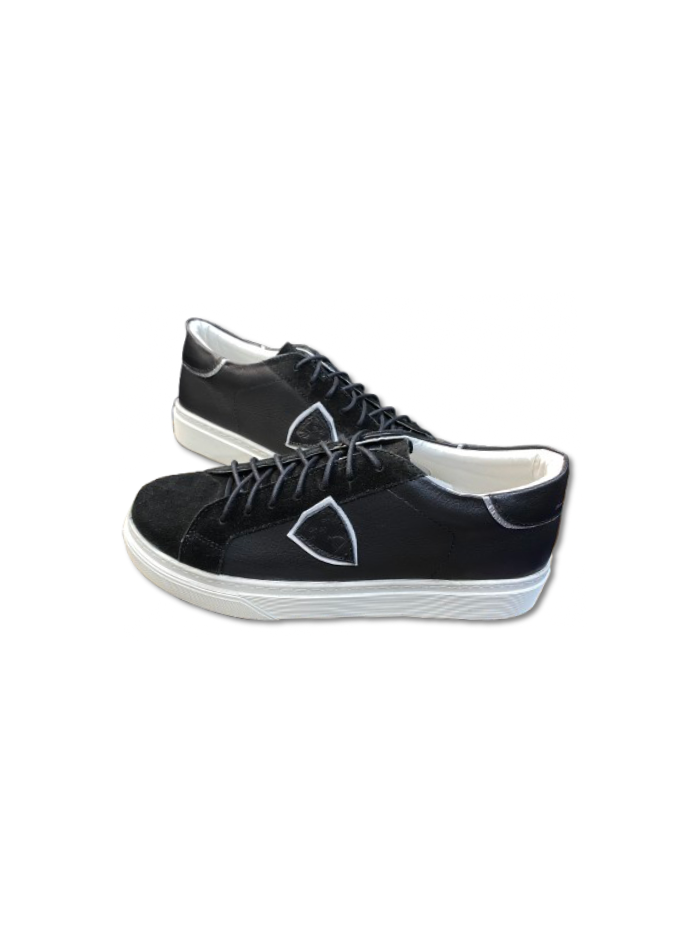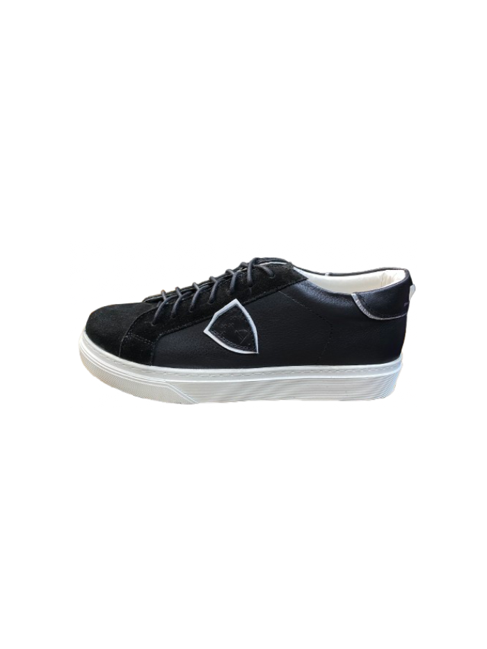 Philippe Model Replica – შავი ტყავისა და ზამშის კომბინაციით, თეთრი ძირით და დახვეწილი დეტალებით. იდეალური შერწყმა სტილისა და კომფორტის.