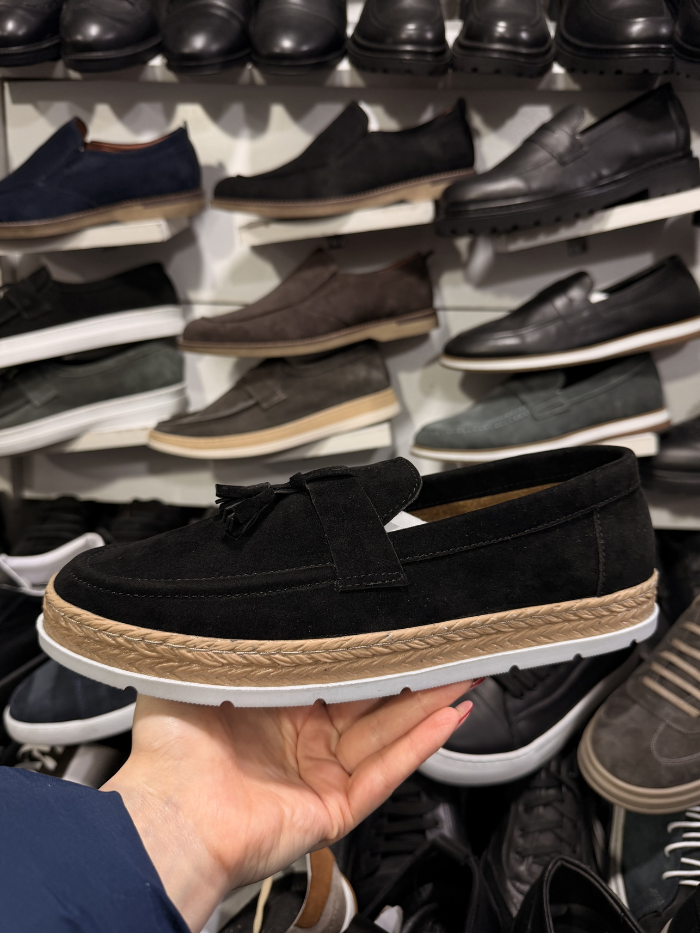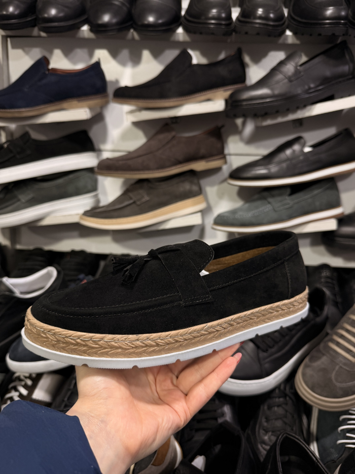 მამაკაცის შავი მოკასინი — კლასიკური და უნივერსალური არჩევანი, რომელიც იდეალურად ერგება როგორც ყოველდღიურ, ისე უფრო ელეგანტურ ლუქს. კომფორტული, მსუბუქი და მარტივად შესახამებელი ფეხსაცმელი.