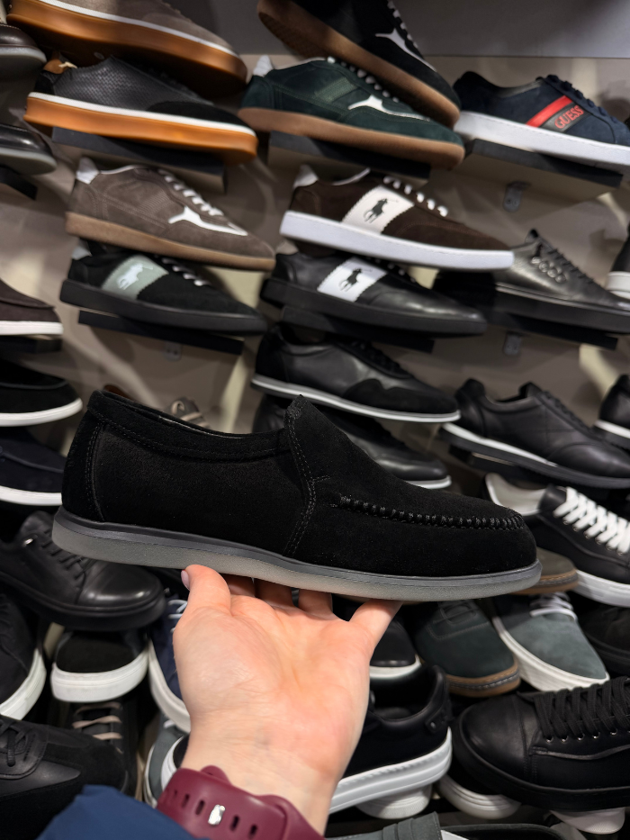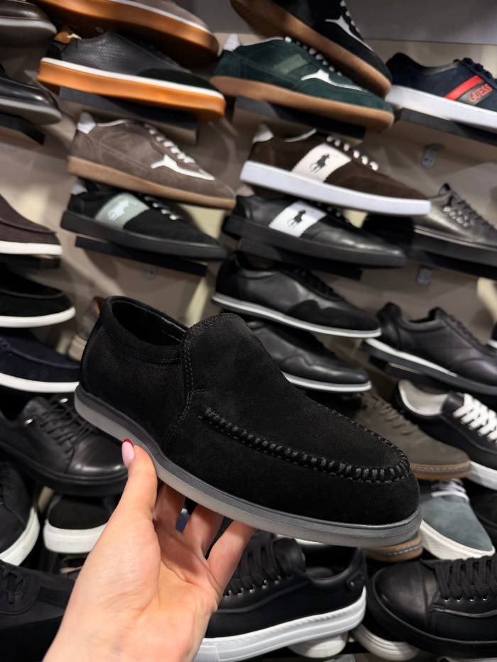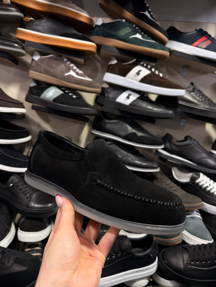 თანამედროვე და პრაქტიკული შავი ზამშის ფეხსაცმელი, გამძლე რეზინის ძირით. რბილი მასალა და კომფორტული ფორმა ქმნის იდეალურ კომბინაციას ყოველდღიური ტარებისთვის. მარტივი და ელეგანტური დიზაინი ადვილად ეხამება სხვადასხვა სტილს.